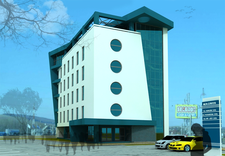 Centrul de afaceri AGA center reprezinta un model de imbinare a volumetriei exterioare usor deconstructivista cu rigurozitatea tramelor de 6x6m .
