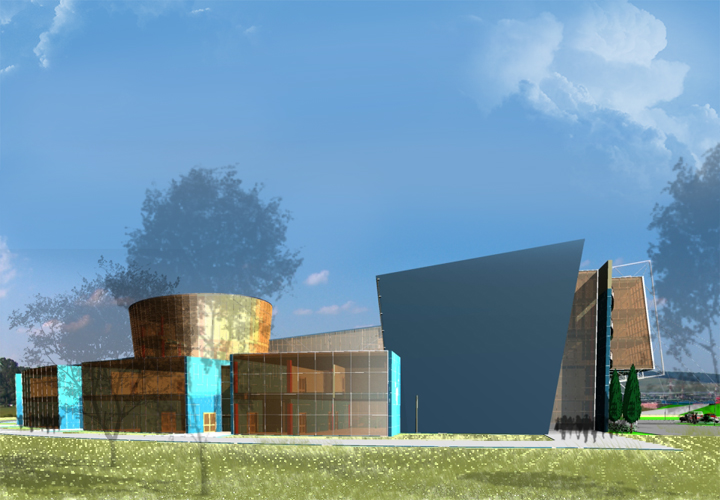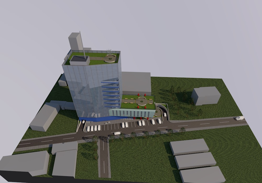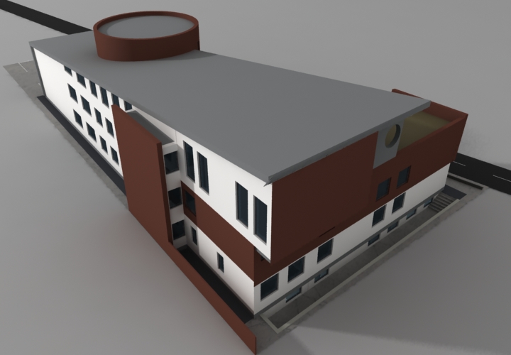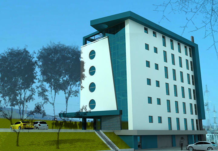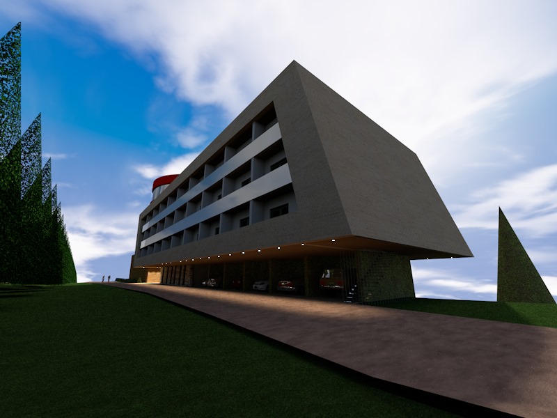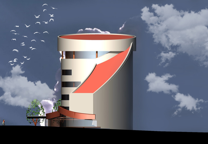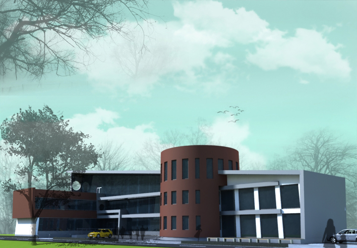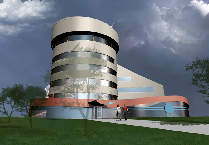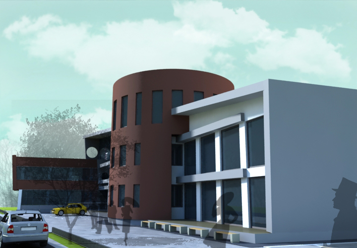 Insasi numele cladirii invita la o viziune futurista asupra cladirii. Asa am si intentionat-o! Volumele simple implicate sunt adunate intr-un areal foarte mic pus la dispozitie proiectantului.