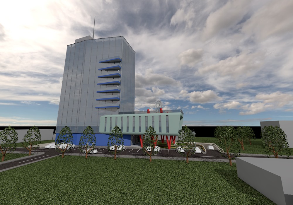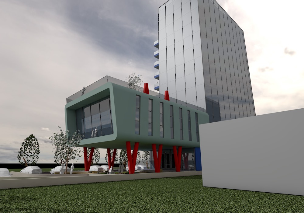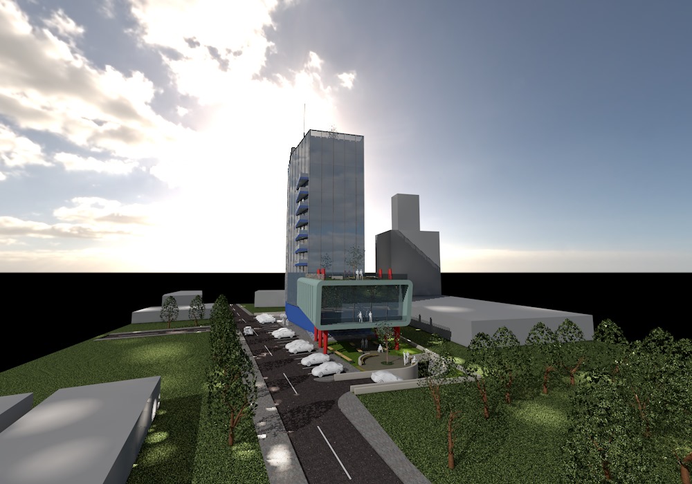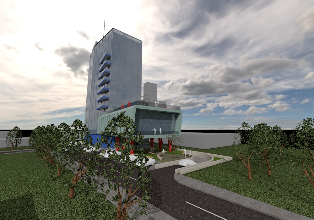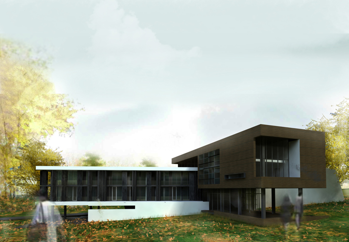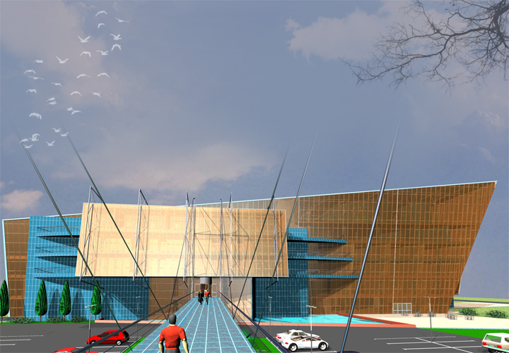 Insasi numele cladirii invita la o viziune futurista asupra cladirii. Asa am si intentionat-o! Volumele simple implicate sunt adunate intr-un areal foarte mic pus la dispozitie proiectantului.