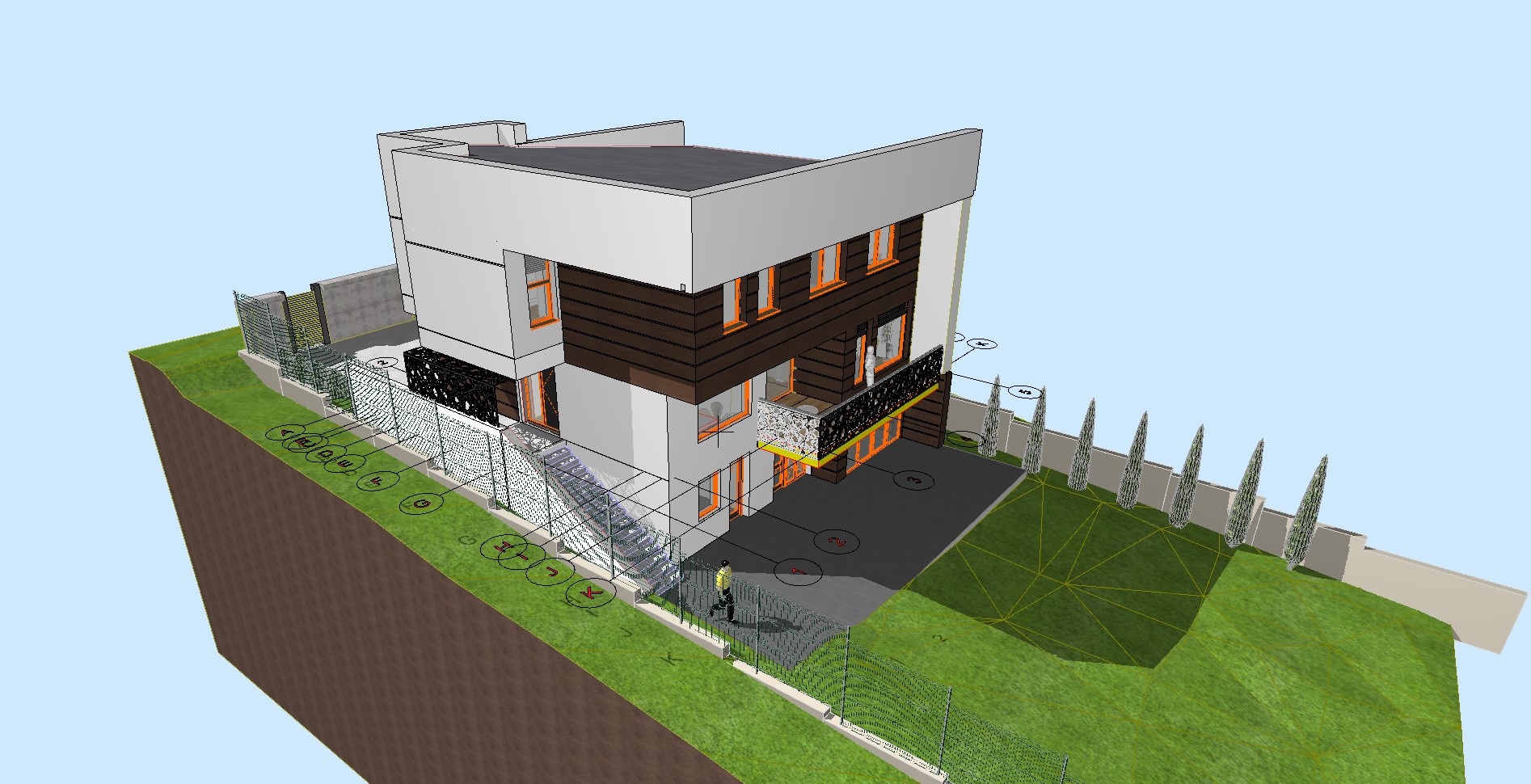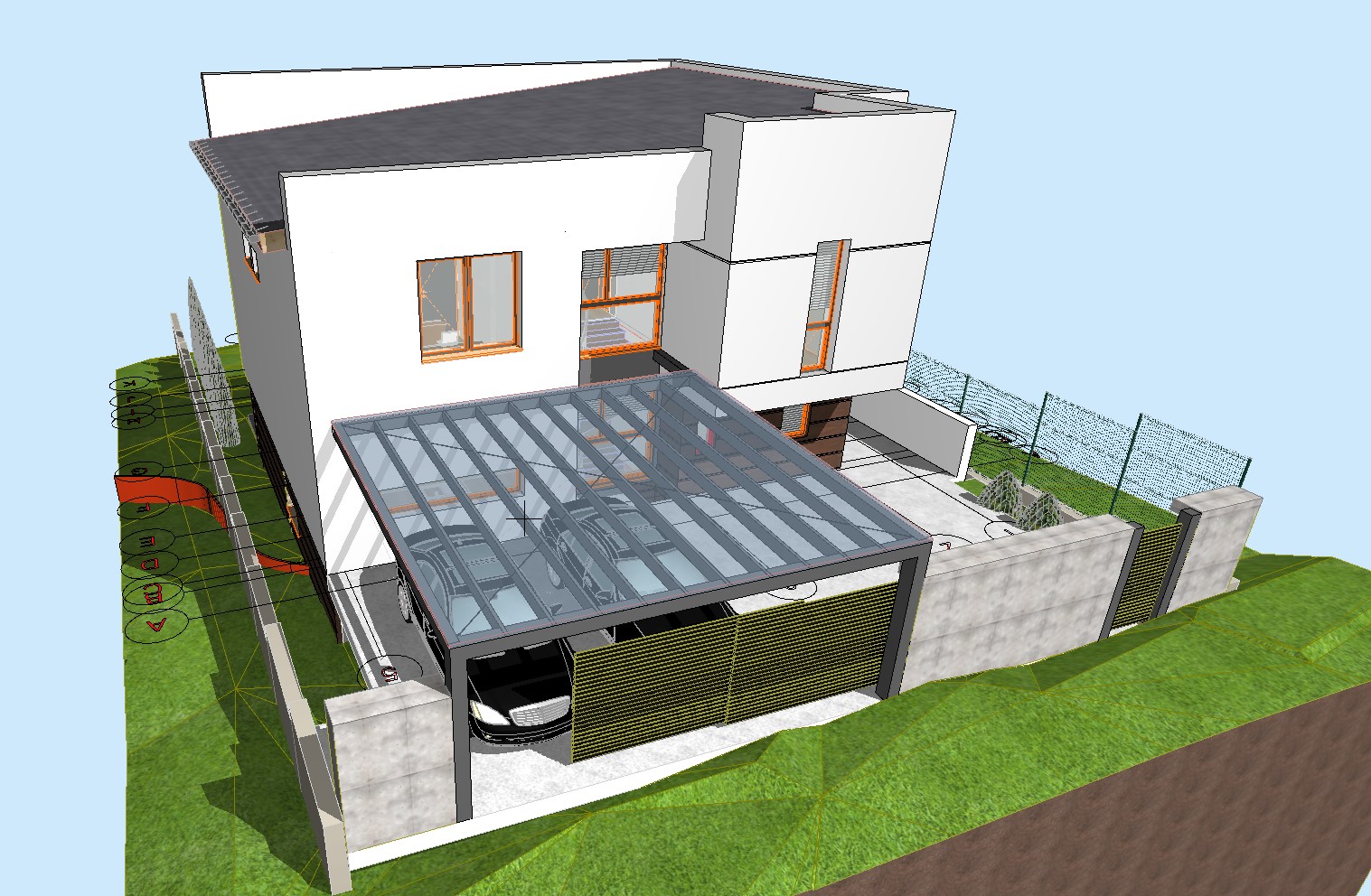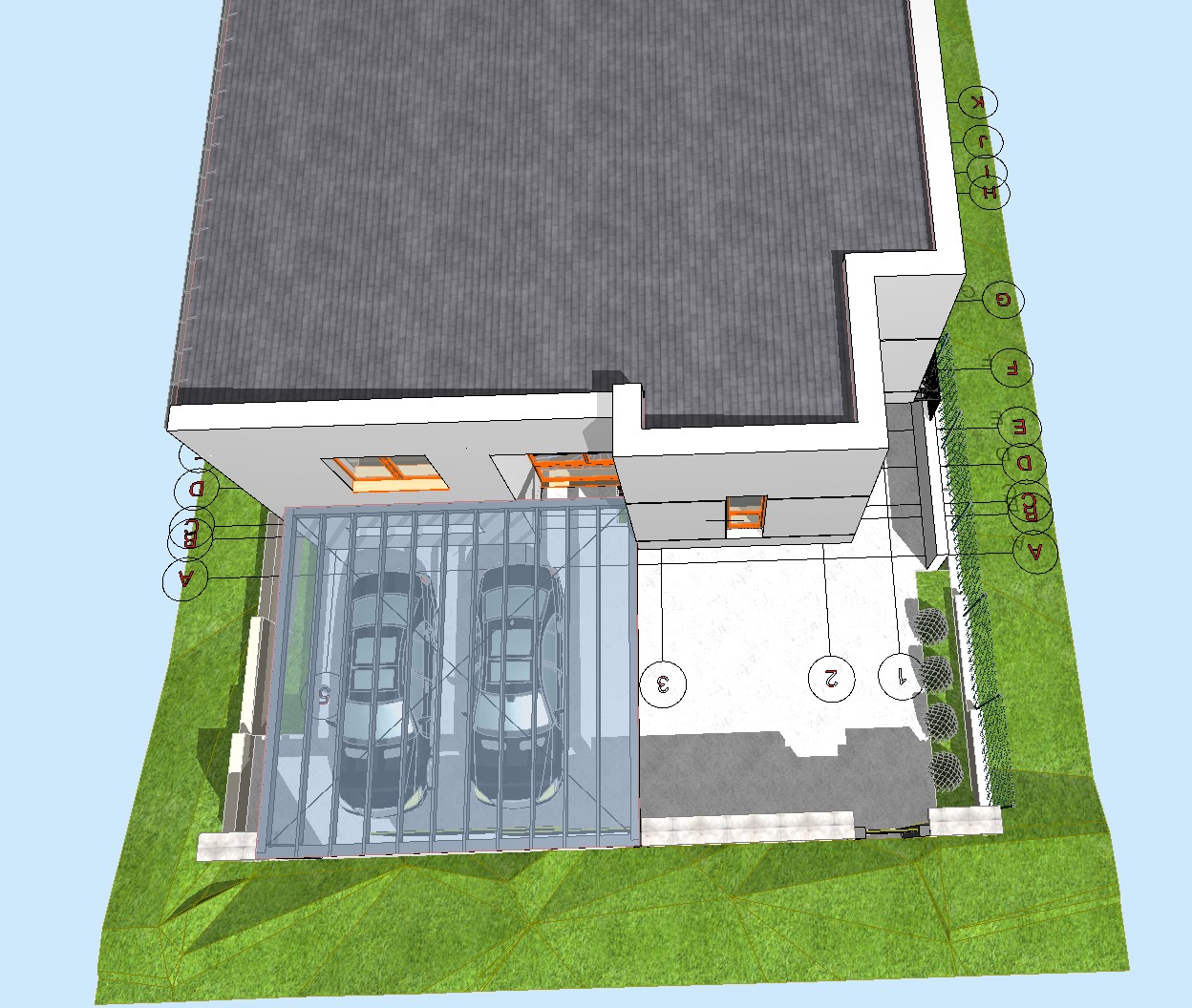 Garajele si locurile de parcare au fost ascunse in demisol pentru a nu deranja linia vizuala de perceptie de pe str. Bucium.
