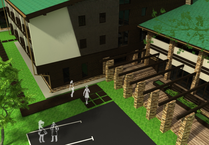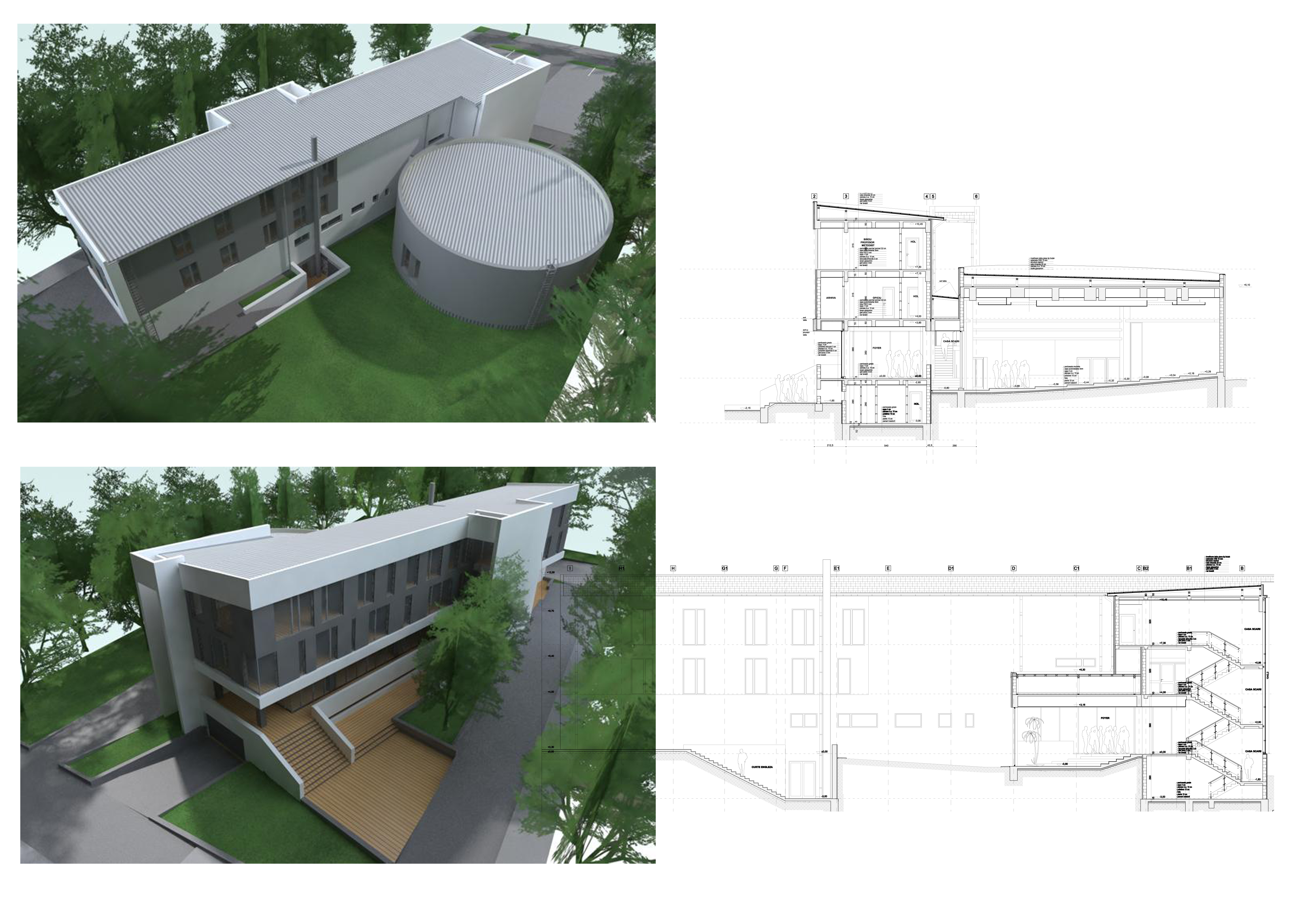 pana la strasina caselor invecinate. Am reusit astfel pe un lot foarte ingust sa putem realiza un centru de invatamant cu sali de clasa,aula, restaurant centru SPA