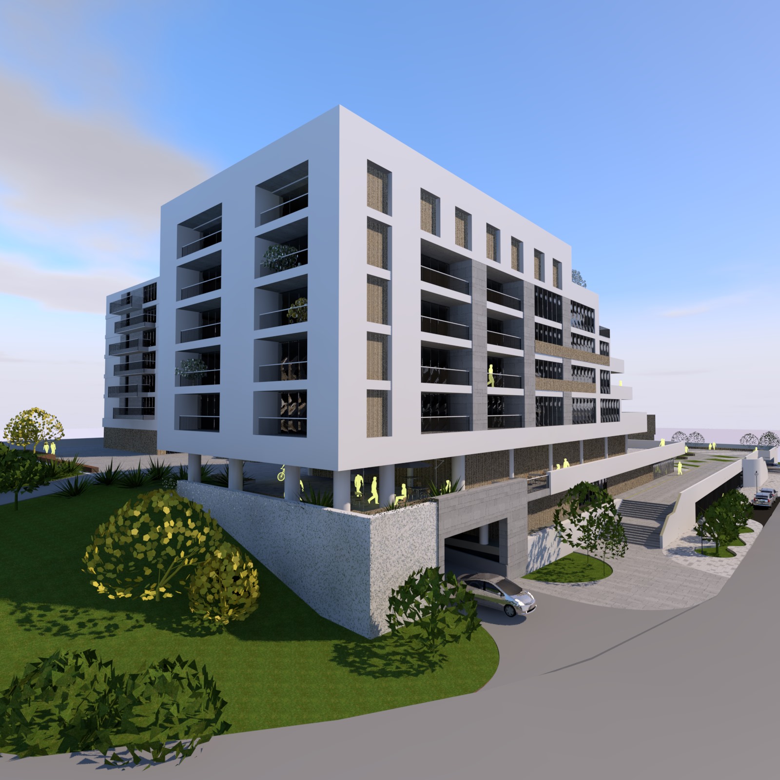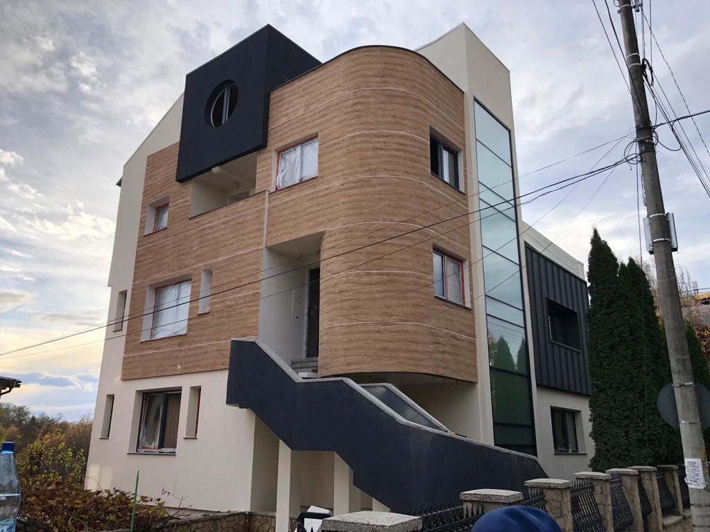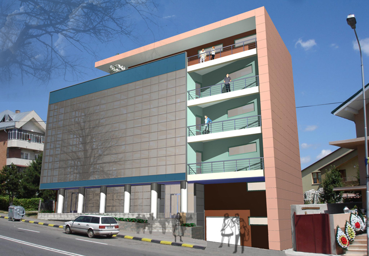 Insasi amplasarea blocului intr-o zona rezidentiala a solicitat cu atat mai mult abilitatiel arhitectului de a realiza un volum cu functiunea de locuinta colectiva (19 apartamente) dar cu aspectul de vila , mai mare.