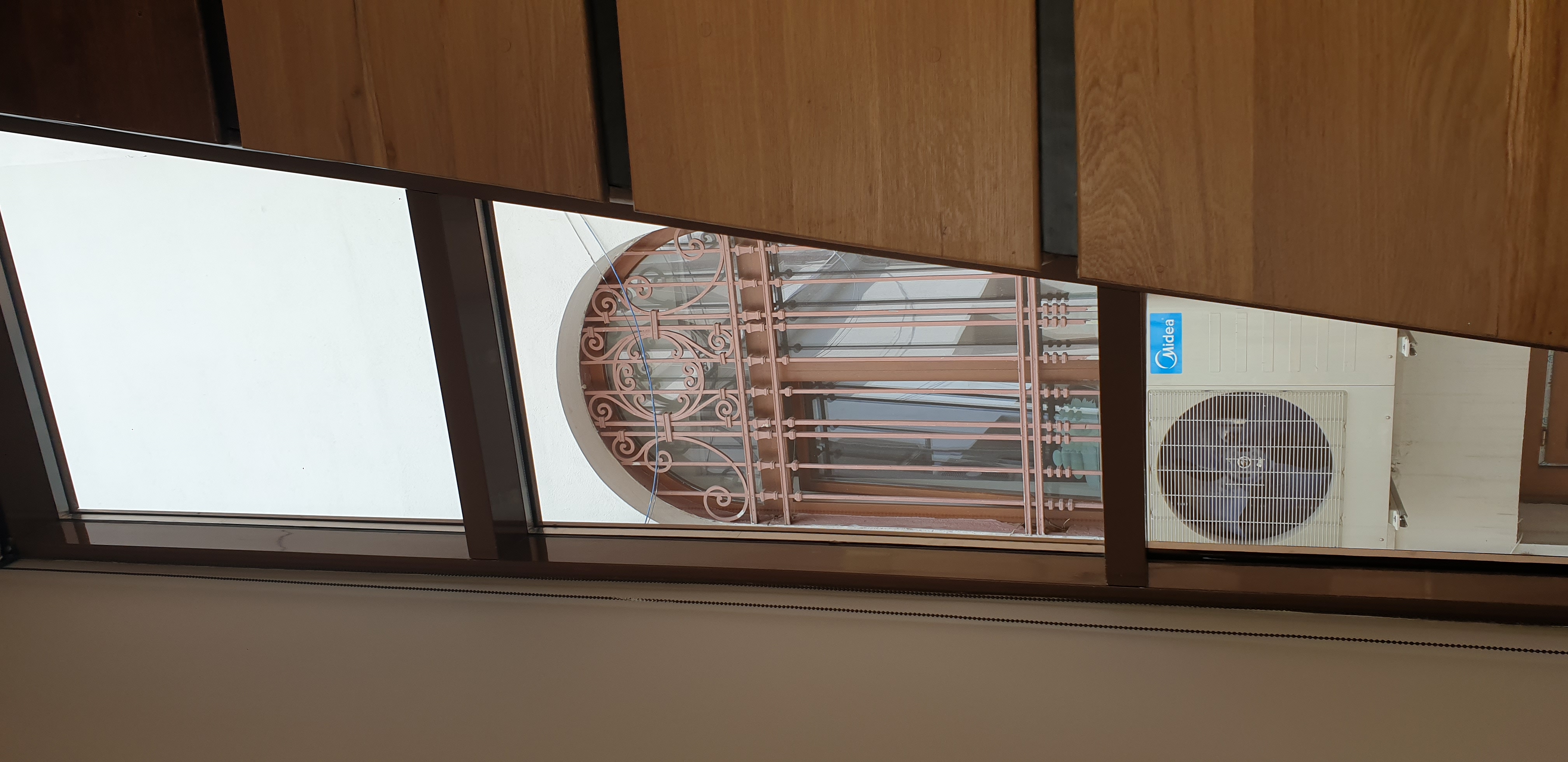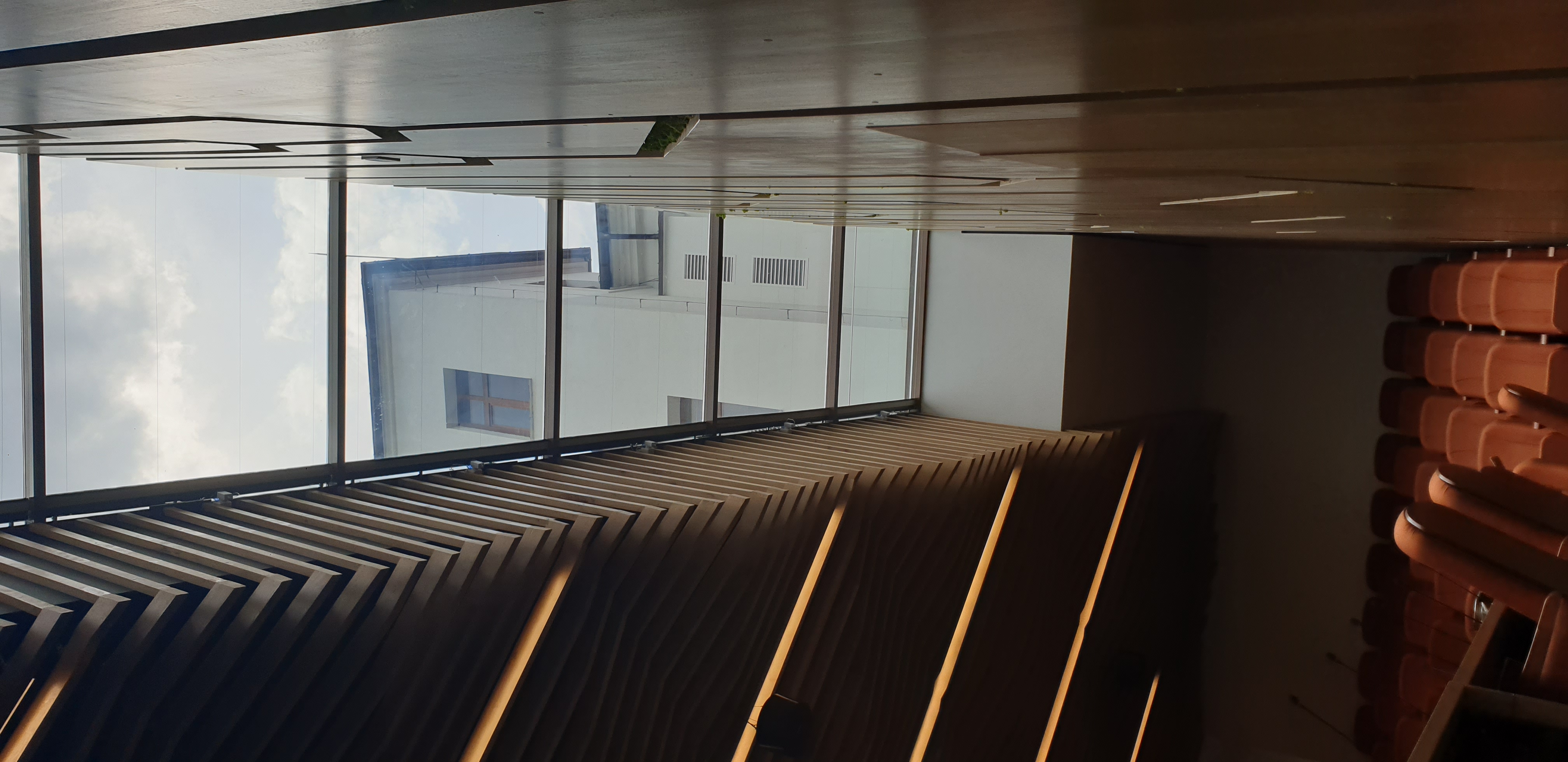 Chiar daca exteriorul a fost conceput pentru a nu deranja cladirea invecinata, mai veche,interiorul reflecta aspiratiile viitorului.