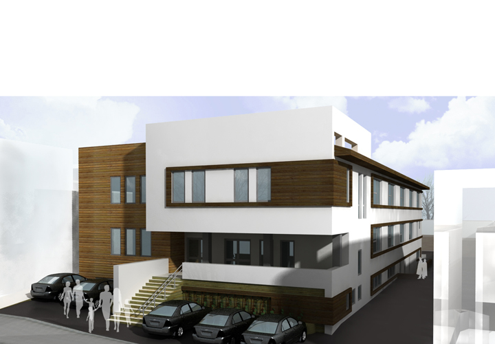 Problemele deosebite d.p.d.v. arhitectural s-au nascut din necesitatea amplasari pe un teren foarte mic a unui obiectiv cu o suprafata desfasurata initiala de ~ 4000 mp. ar fi rezultat in cel mai bun caz un imobil cu regim de inaltime Demisol+Parter+4-5 etaje. Primaria a impus ca inaltimea la strasina a noii cladiri sa nu o depaseasca pe cea a caselor invecinate.